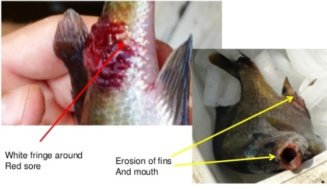 The following common symptoms are mostly seen in diseased fish due to different disease.