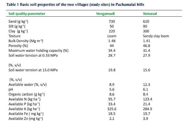 Surface gravelliness with coarse soil texture is also a common feature especially in northern parts of the hill. The Pachamalai hill is a green hill range inhabited by the Malaiyalee (hillmen) tribes who depends mainly on agriculture for their livelihood. The socio-economic conditions of the tribes are generally poor and their exposure to diverse income generating activities is very limited. They have unique culture and social norms. Even though they encounter social and environmental problems, they still depend on agriculture for their livelihood as they are unaware about crop diversification. Soil acidity, erosion, surface and sub surface hardening are considered to be the major constraints for successful cultivation of crops including tuber crops like cassava. All these limitations together with the declining soil carbon content considerably reduced the soil water and nutrient use efficiency, yield potential and starch quality of cassava which affected the farmers’ livelihood considerably in recent years.