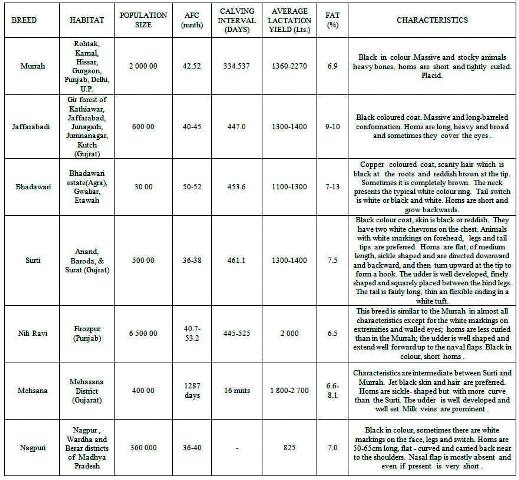 Chart Representing Indigenous Breeds of Buffaloes and Characteristics