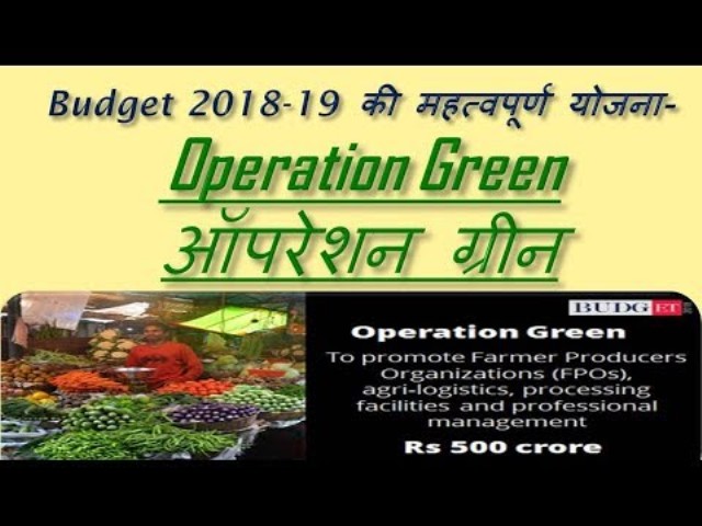 A central scheme aimed to contain annual price distress of tomatoes, onion and potatoes. The Operation Green aims to promote farmer producers organizations, agri-logistics, processing facilities, and professional management. The idea behind Operation Green is to double the income of farmers by end of 2022. Operation is essentially a price fixation scheme that aims to ensure farmers are given the right price for their produce. The scheme was launched in 2018-19 in Feb in Lok sabha by Mr. Arun Jaitley who proposed that it would be launched with an allocation of Rs 500 crore on the lines of Operation Flood.