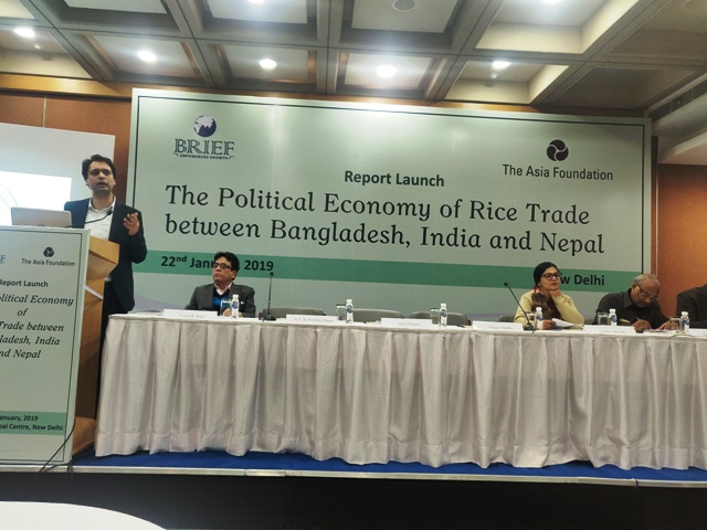 BRIEF, an economic research organisation, organised the launch of its latest report on ‘The Political of Rice Trade between Bangladesh, India and Nepal,’ on 22nd January 2019 at India International Centre, Lodhi Road, New Delhi. The report was released by Shri Sanjay Chadha, Additional Secretary, Ministry of Commerce, amidst other dignitaries. The study was supported by The Asia Foundation, New Delhi. The study, co-authored by Afaq Hussain and Riya Sinha, was conducted in 2018 with the objective of assessing the factors that play a role in the shifting trade patterns between the selected countries and achieving food security.