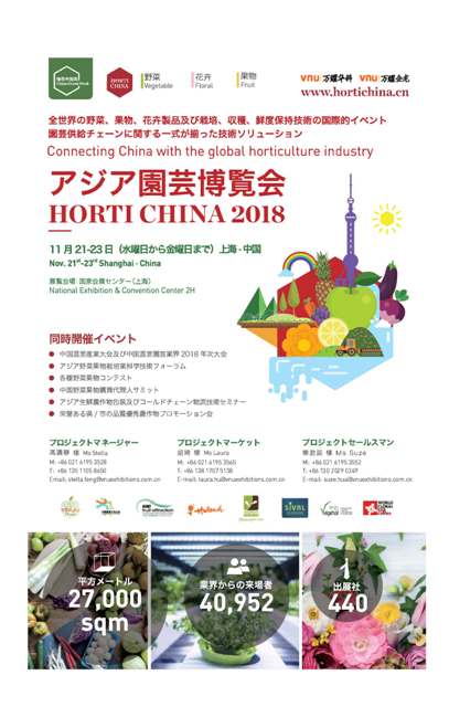 With its international scope and communication concepts, HORTI CHINA is dedicated to accelerating the development of China's vegetable, flower, and fruit industry, by means of technology and equipment improvement, talent scouting and community building, branding, as well as facilitating direct trade and purchasing of fresh produce by professional buyers.