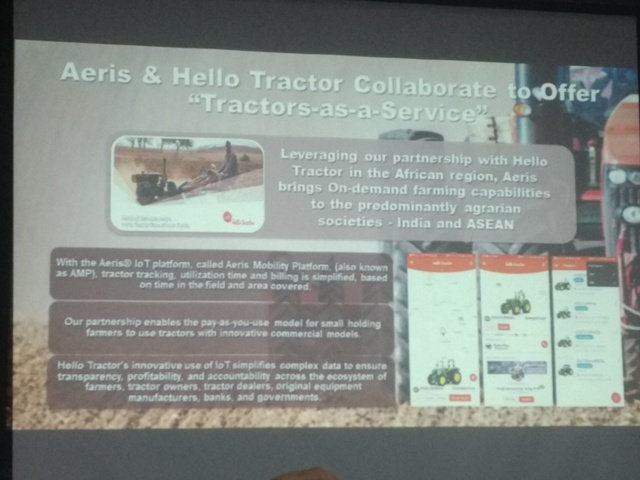With the Aeris IoT platform, called Aeris Mobility Platform, (also known as AMP), tractor tracking, and utilization of time and billing are simplified, based on time in the field and area covered. The partnership enables the pay-as-you-use model for small holding farmers to use tractors with innovative commercial models. Hello Tractor's innovative use of IoT simplifies complex data to ensure transparency, profitability, and accountability across the ecosystem of farmers, tractor owners, tractor dealers, original equipment manufacturers, banks, and governments.