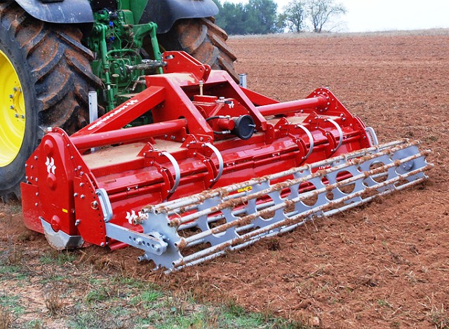 It uses a set of blades and rotors which churns the soil by spinning and breaking through it. It originates from two English words i.e. Rotatory (Rota) and cultivator (vator)