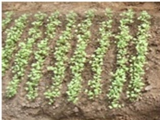 The treated seeds are sown in the lines 5 cm apart at 0.5-1.0 cm depth and are covered with a thin layer of well rotten FYM and soil mixture.
