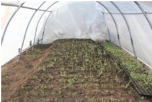 The trays are provided with protective cover from rain by covering with polyethylene sheets in the form of a low tunnel whenever it rains.