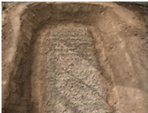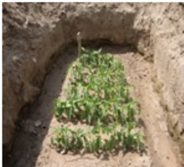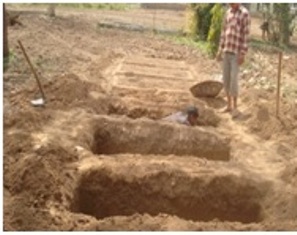 Prepare a raised bed of 5-10 cm height at the bottom of the trench. The soil should not be imported from outside the trench. Albeit, FYM (25kg) and inorganic fertilizer mixture (100g) may be added as recommended earlier. Precautions must be observed in applying FYM. It may be treated with fungicide/Trichoderma (1kg/100kg dung) at least 15 days prior to bed preparation.