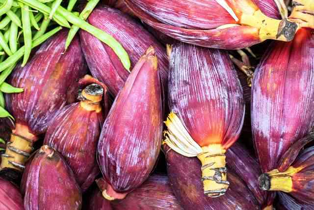 We can make several dishes and beverages by using banana flowers including salad, pakoda, banana flower curry, thoran, wine, etc.