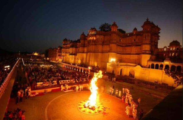A log of wood is placed at a known place on the Basant Panchami festival. And from that day onwards, people enlarge this log with small wood branches, dried leaves, twigs or combustible materials.