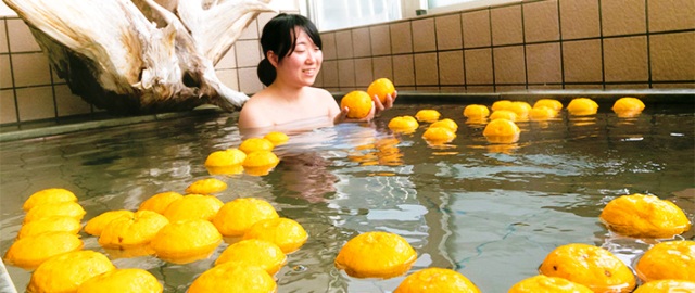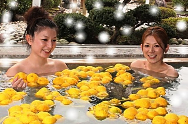 Each Winter Solstice, many baths around Japan will have these bright-yellow fruit bobbing around. Known as Yuzuyu, these baths are believed to strengthen against winter cold and flu, while enzymes from the oil of the peel are thought to help soften the skin and improve digestion.