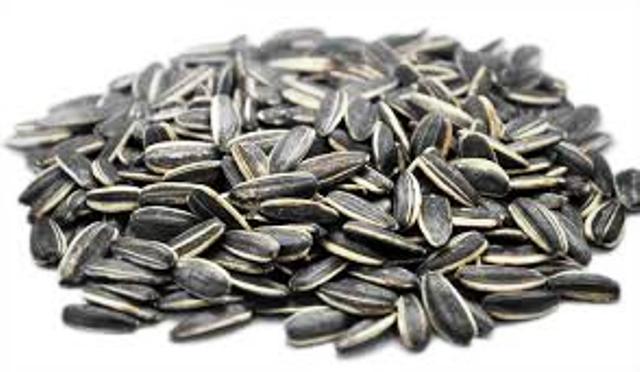Sunflower seeds are the gift of the beautiful sunflower that has rays of petals emanating from its bright yellow, seed-studded center. The flower produces grayish-green or black seeds encased in tear-dropped shaped gray or black shells that often feature black and white stripes.