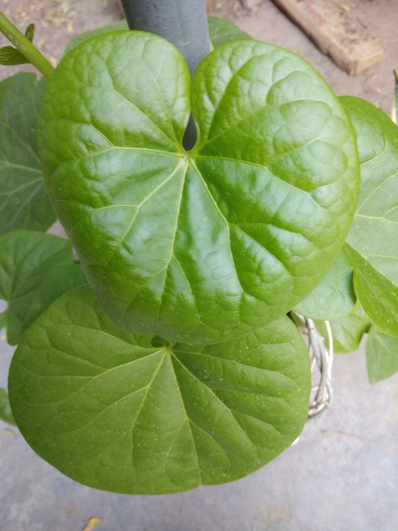 Giloy/Guduchi/ Tippa tiga (telugu)/ amritavalli ( malyalam, kannada) also called heart shaped moonseed is Tinospora cordifolia. Guduchi or Giloy is a famous Ayurvedic herb, used extensively in treatment for fever, diabetes, urinary tract disorders, anemia, jaundice, asthma, cardiac disorders etc. It is a well known immuno-modulator herb used in the correction of auto-immunity.