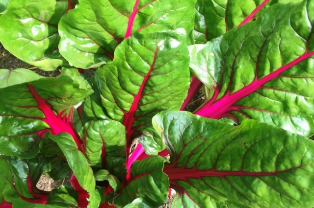 Swiss chard is a leafy green crop that grows well in the cold weather. It is very attractive and comes in many colors like yellow, pink, bright red and white.