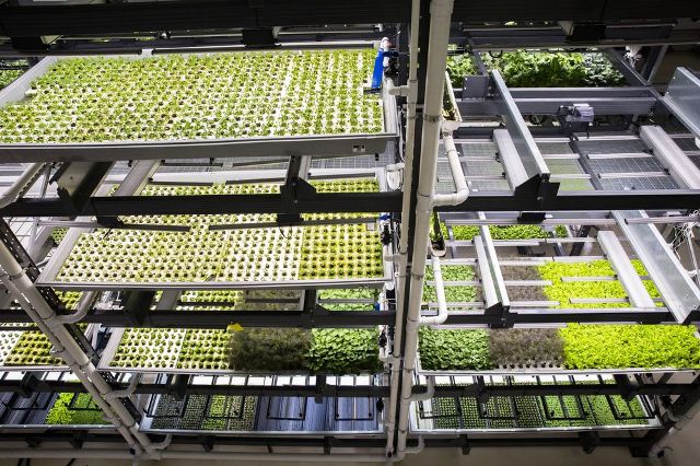 Bowery grows its veggies in layers of sensor-rich trays that move and react to humidity, carbon dioxide and light. One square foot of Bowery’s indoor farm is 100 times more productive than an equivalent plot of arable land, Bowery says. Plenty makes similar claims.
