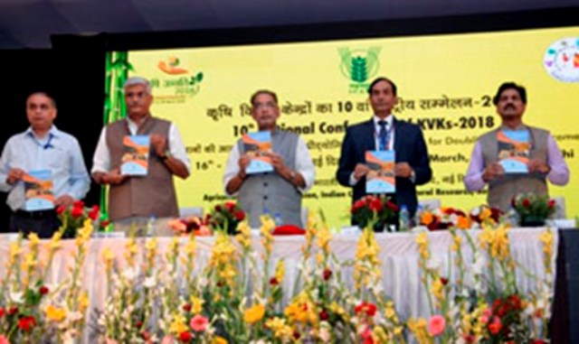 The Hon`ble Minister congratulated the award winning KVKs and urged to come forward for the betterment of farming community by promoting FPOs and linking more farmers to e-NAM, secondary agriculture and off farm income. He said due to the efforts of KVKs we are now almost self-sufficient in pulses production by producing 23 million tons of pulses in 2016-17.