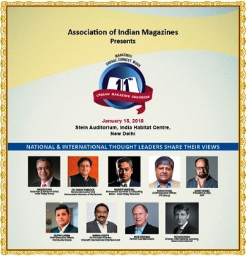The 11th Indian Magazine Congress scheduled to be held on January 15, 2018, is successfully being going on at Stein Auditorium,India Habitat Centre,New Delhi with the great deal of informations from publishing fraternities.The co-partners were Delhi press magazines, India today group, Outlook group and The WEEK.Lanyard partner, Magzter digital, Associaton Partners, Chitralekha & Vikatan.