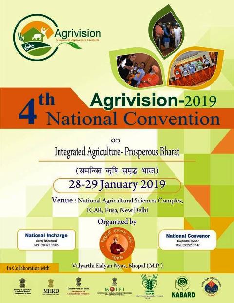Keeping the above facts in view, the Vidyarthi Kalyan Nyas, Bhopal is going to organize a national convention on "Integrated Agriculture - Prosperous Bharat" on 28-29 January 2019 at National Agriculture Science Complex, Indian Council of Agriculture Research, Pusa Campus, New Delhi.