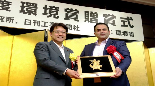 National Institute for environmental studies, department of environment, Japan and the Nikkan kojyo-shibun media group cordially present Environmental Award.