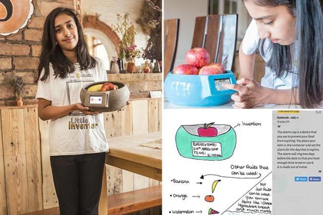 Lincolnshire school girl Rumaan Malik, just 11 years has developed a smart bowl with a touch screen to inform two days before the particular fruit is going to expire. She invented a simple, but clever piece of tableware.