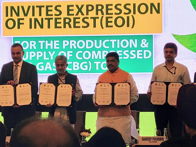 Union Minister of Petroleum and Natural Gas, Skill Development & Entrepreneurship Shri Dharmendra Pradhan launched the innovative initiatives with Public Sector Undertaking Oil Marketing Companies (OMCs, that is, Indian Oil, BPC and HPC) inviting Expression of Interest (EoI) from potential entrepreneurs to set up Compressed Bio Gas (CBG) production plants and make available CBG in the market for use in automotive fuels.