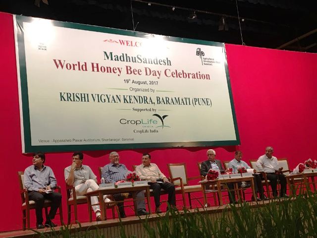 CropLife India in association with Indian Council of Agricultural Research (ICAR) and Agriculture Development Trust, KVK Baramati celebrated the ‘Honey Bee Day’ in Baramati on 19 August 2017. The day is observed to promote beekeeping and pollination services in agriculture. Farmers who took part in the project program were felicitated amongst around 800 farmers amidst dignitaries like Shri Sharad Pawar, President – Agricultural Development Trust, Shri Rajendra Pawar, Chairman, Agricultural Development Trust, members from ICAR, KVK Baramati and member organizations of CropLife India.