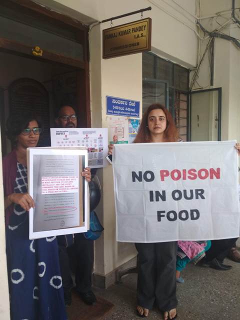 Not satisfied with the wholly inadequate responses of the Food Safety and Standards Authority of India (FSSAI) on the matter of hazardous GM foods flooding Indian markets illegally, a citizens’ delegation of ‘India For Safe Food’ knocked on the doors of the Karnataka Food Safety Commissioner. They were demanding the removal of unapproved GM foods from the market and for penal action to be initiated against the violators of different laws that regulate GM foods in India. This follows the findings of Centre for Science and Environment’s findings that 32 percent of the food samples it tested were GM-positive.