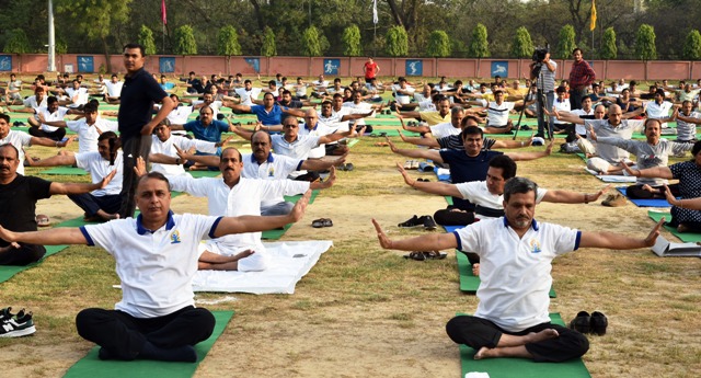 Sh. Kailash Chaudhary highlighted the importance of Yoga as an important invaluable gift to the people. He explained that by changing our lifestyle and creating consciousness, yoga can help in maintaining good health. He also addressed the whole staff, stressing upon the importance of Yoga for the overall health, peace, harmony, and progress. He emphasized that the Prime Minister of our country, Shri Narendra Modi Ji is trying to make Yoga a pillar of the 'preventive healthcare and wellness' system.