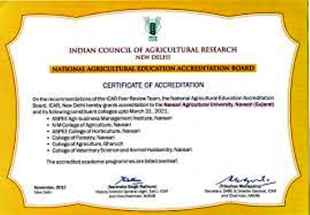 The Indian Council of Agricultural Research has been striving to aid, impart and coordinate agricultural education to develop quality human resource in the country. In order to address the concerns of quality higher agricultural education, the National Agricultural Education Accreditation Board (NAEAB) was established to advise the Council in evolving norms and standards for accreditation of institutions and programmes of agricultural education. NAEAB started accreditation of Agricultural Universities in the year 2001. Accreditation being granted by the Board is voluntary in nature and based on the request submitted by the Agricultural Universities in the form of Self Study Reports and report of external peer reviewers.