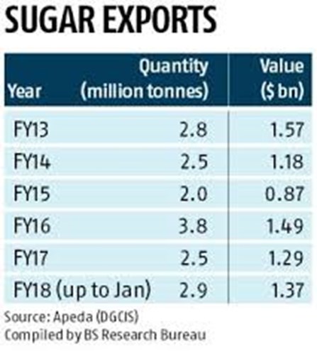 Bumper production this season and with good crop expected the next season as well, sugar millers in the state are grappling with the challenge of a huge inventory. The country would have around 80 lakh tonne of carry over stock after exporting the mandated 20 lakh tonne this season. Need to comply with the Government policies, there is no option before millers but to export. The Government made it mandatory for sugar mills to export 20 lakh tonne sugar in 2017-18 marketing year as per the quota allocated to individual mills.