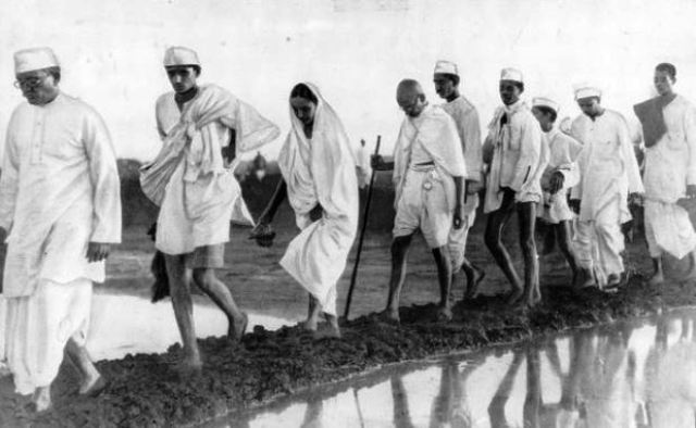As part of the civil disobedience movement against the British government, 80 Satyagrahis led by Mahatma Gandhi walked 241 miles from Sabarmati Ashram located in Ahmedabad to the coastal town of Dandi and made salt from the sea water, breaching the Salt Law imposed by the British.