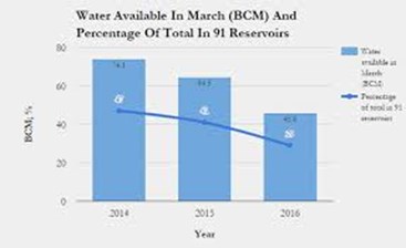 The water storage available in 91 major reservoirs of the country for the week ending on April 05, 2018 was 42.973 BCM which is 27% of total storage capacity of these reservoirs. This percentage was at 28 for the week ending on March 28, 2018. The level of water storage in the week ending on April 05, 2018 was 85% of the storage of corresponding period of last year and 90% of storage of average of last ten years.
