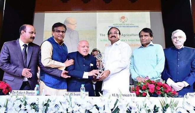 Renowned agricultural scientist and the chief architect of the green revolution in India, Prof. MS Swaminathan was awarded the very 1st World Agriculture Prize for his immense contributions to Indian agriculture by Indian Vice-President Venkaiah Naidu on 26 October.