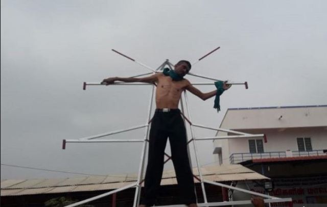 A few angry farmers in Tamil Nadu mimicked hanging themselves from the electricity transmission towers on 19th December, opposing an electricity project. The opposition is against the Power Grid Corporation of India Limited for executing the project as well as against the state government for being silent on the issue.