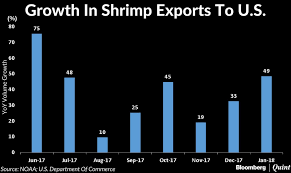 According to a report by CRISIL Research, seafood export will grow 17-18 percent this financial year, 500-700 basis points (bps) slower than the 23 percent and 25 percent rates in FY17 and FY18, respectively. US shrimp export realizations (in dollar terms), that account for 70 per cents of export value, are also expected to fall by 10 percent in fiscal 2019.