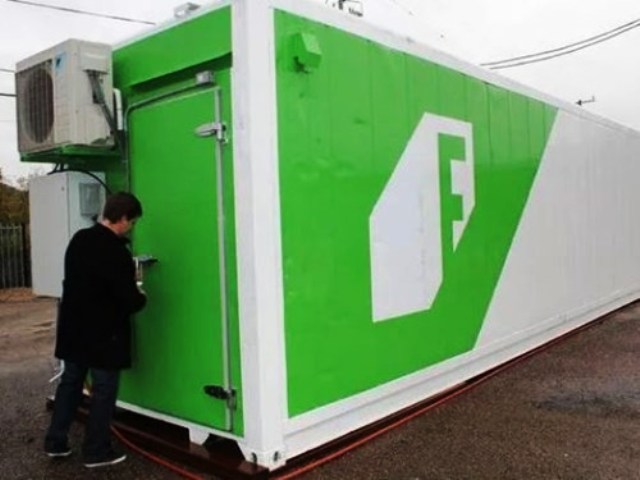 The farm uses strips of red and blue lights, the spectrums used in photosynthesis, to make it as efficient as possible. Machines automatically dose the plants with water and nutrients. All notifications lead back to an app on phones, which allows farmers to track everything from seeding to harvesting. On average the process takes about seven weeks and, depending on the environment, this can actually be almost twice as fast as a traditional farm, Freight Farms said.