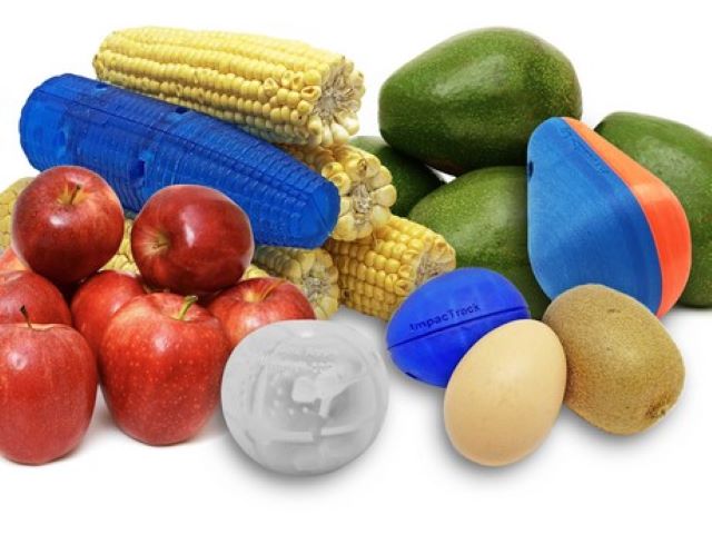 ImpacTrack, a monitoring and logging system which records movement & temperature, is available with a range of shells which match the dimensions of fresh produce, so far including avocados, kiwi fruit, strawberries, apples, onions, potatoes and eggs.