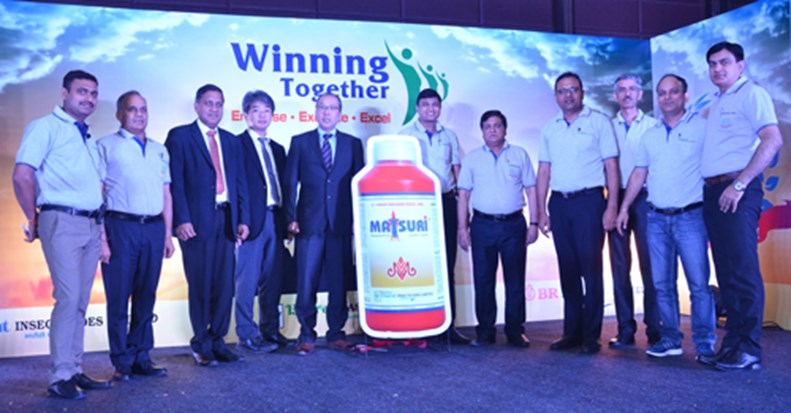 Bharat Insecticides Ltd launched Matsuri, an innovative fungicide for Sheath Blight in Rice. The launch event took place in Hotel Crowne Plaza, New Delhi on 9th June 2017 in presence of Mr Yuji Sato, Director- International Business, Mr Y Masuzawa, Manager-Asia, Dr RK Yadav, Country Head from Nissan Chemicals, Japan, Mr RP Gupta, Director, Mr MP Gupta,Director and Mr Dharmesh Gupta, Director, Bharat Insecticides Ltd.The launch event was attended by more than 140 key distributors from Haryana, West UP and Uttarakhand.