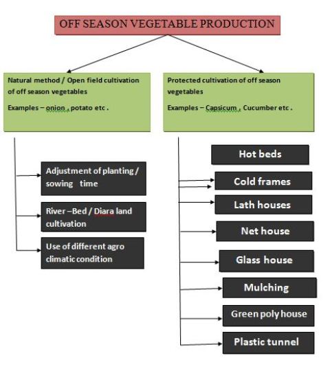 The main objective of off season vegetable cultivation is to produce and supply the vegetables to the market during their lean period.